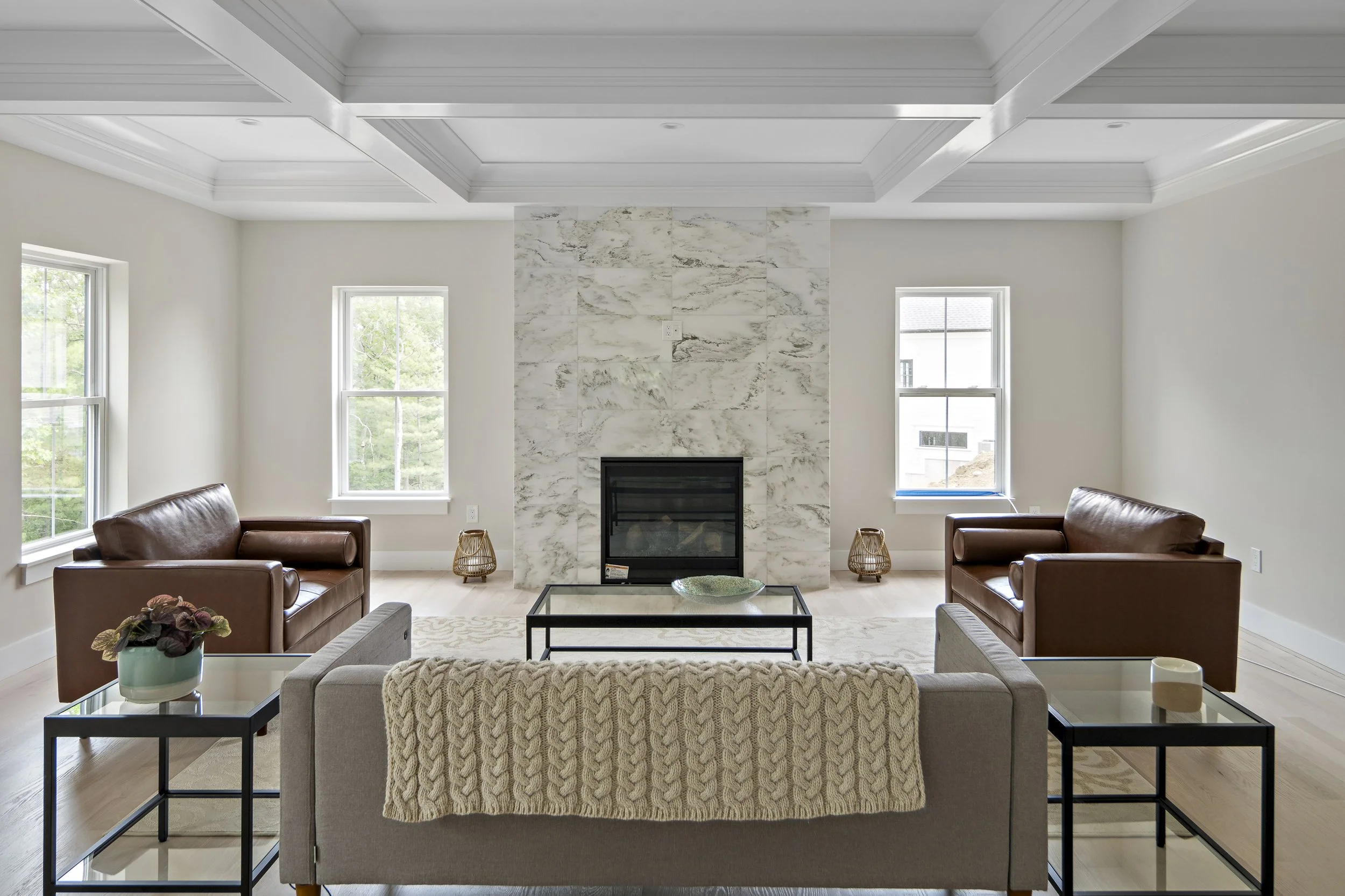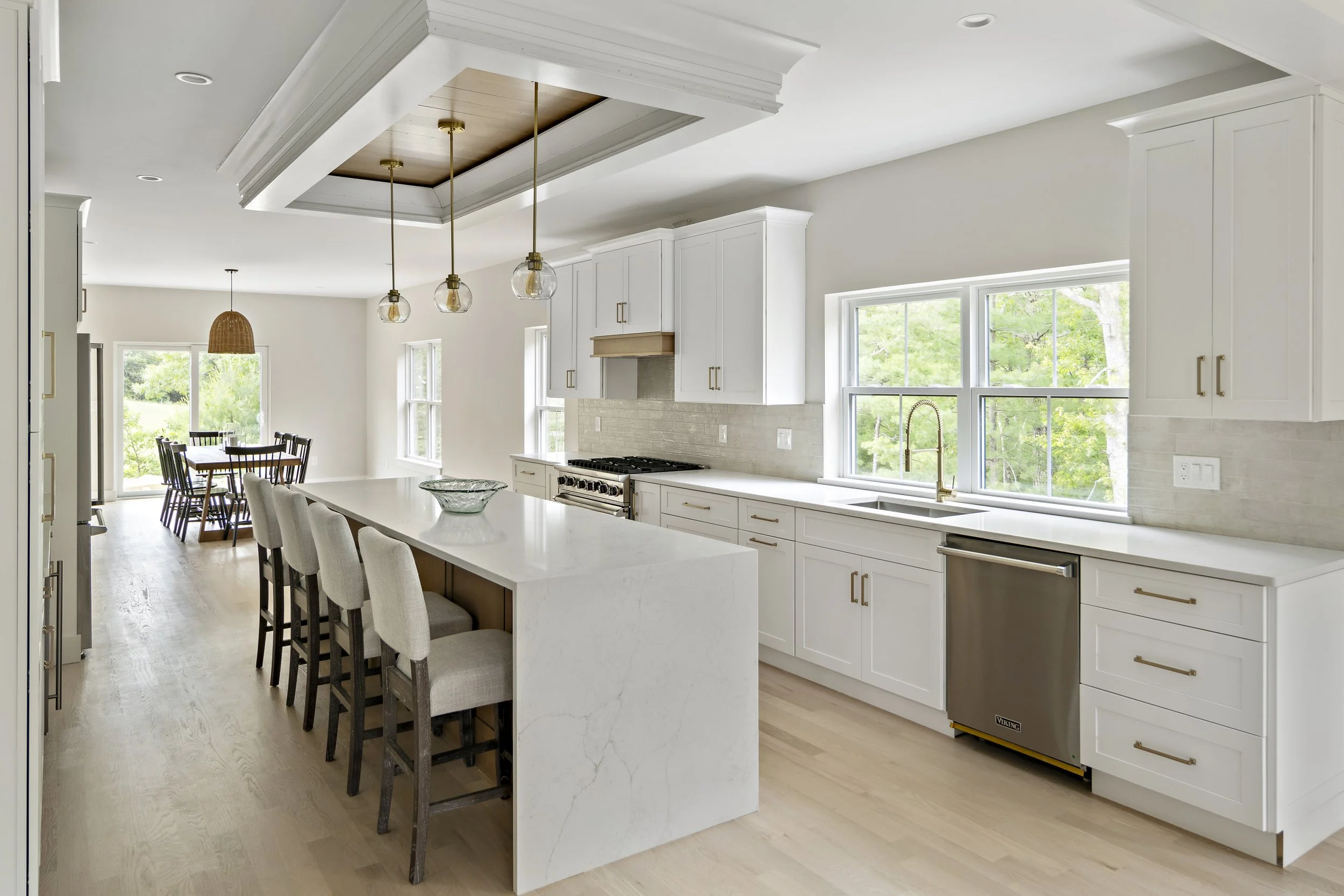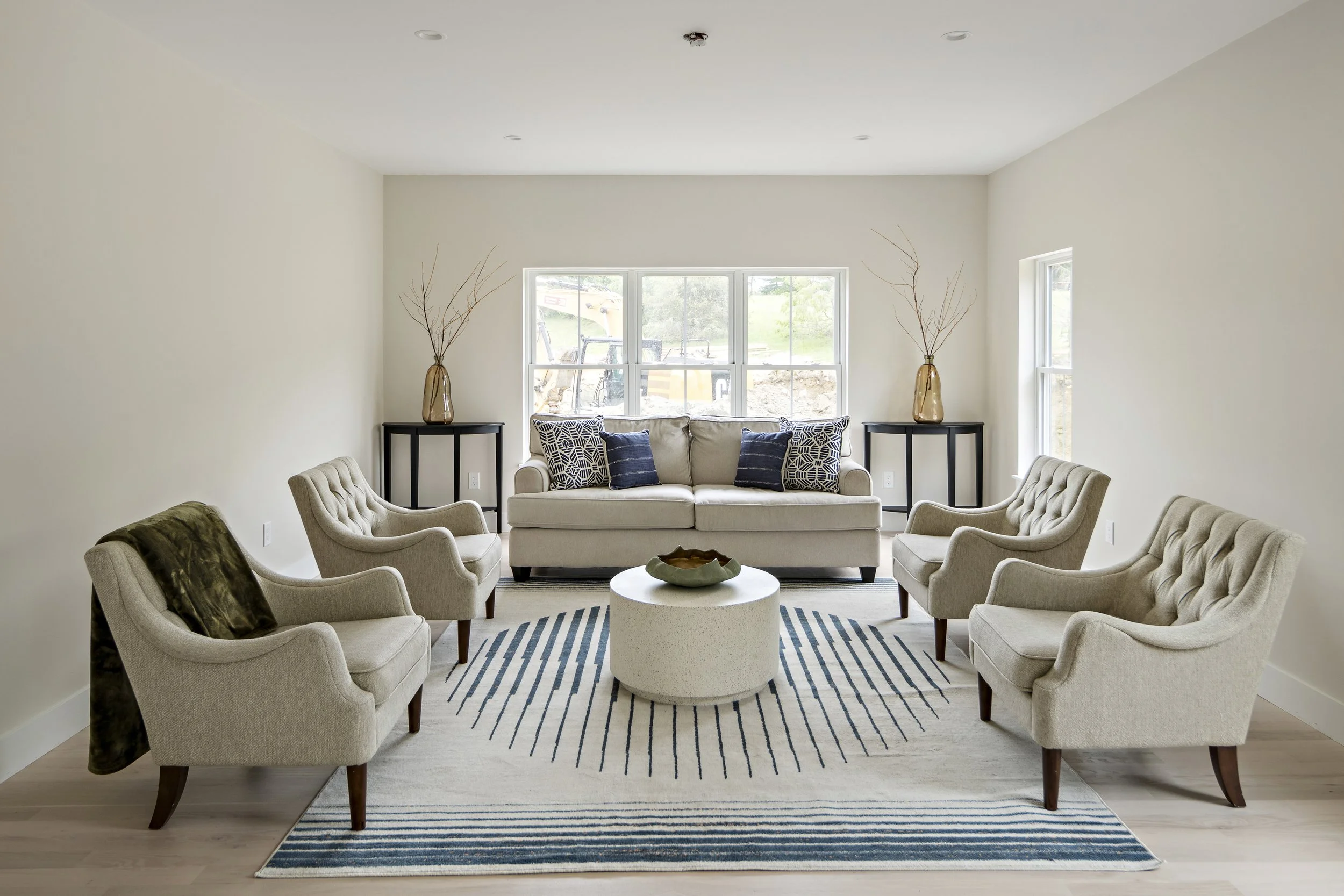 Designing and staging the interiors of this “spec” house was refreshing, I was able to work with a builder who was open to new idea’s. This house is far from a typical builder house. This house is truly transitional, prospective homeowners were drawn in whether they were looking for a traditional or a contemporary home. The general scheme is warm woods, with soft brass hardware, black accents with clean lines. As an Interior Designer, selecting finishes for new construction means being a few steps ahead of the latest trends.